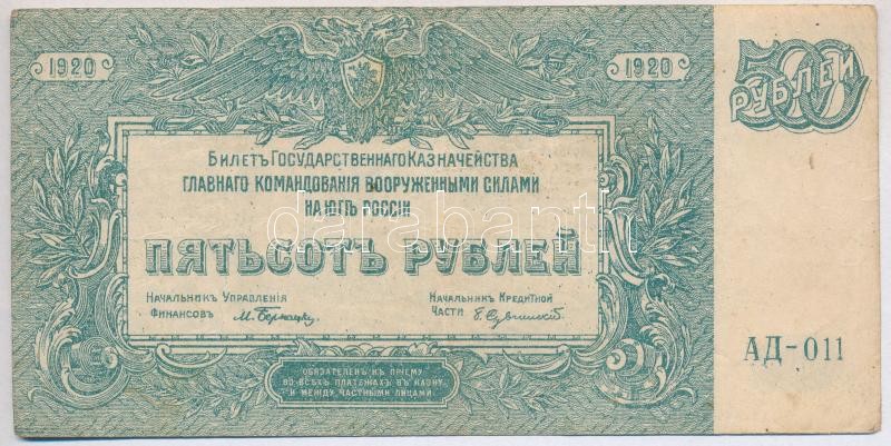 Leírás: Orosz Birodalom 1909-1912. (1909) 10R Szign.:Konshin + Orosz Polgárháború / Dél-Oroszország / Vrangel Hadserege 1920. 500R T:III,III- ly., szakadás