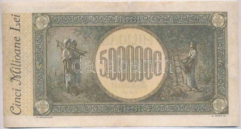 Romania 1947. ... https://www.darabanth.com/hu/283-Gyorsarveres/283.0/Numizmatika/Kulfoldi-bankjegyek~300012/Romania-1947-5000000L-vizjeles-papiron-Trestauralt--Romania-1947-5000000-Lei-white-waterm~II1469071