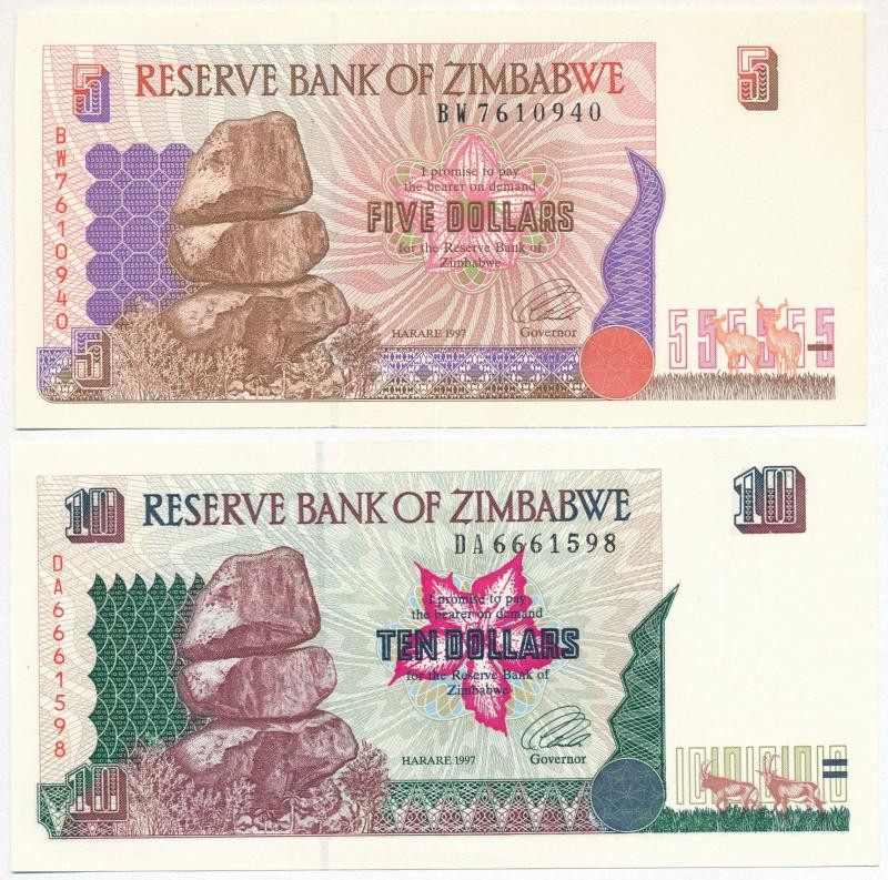 Zimbabwe 1997. 5 Dollars + 10 Dollars C:UNC