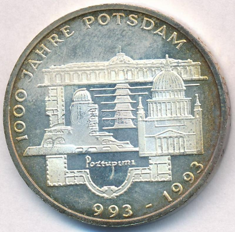 Németország 1993F 10M Ag "1000 éves Potsdam" műanyag tokban angol és német nyelvű tanúsítvánnyal T:1-(PP) apró ph.,patina