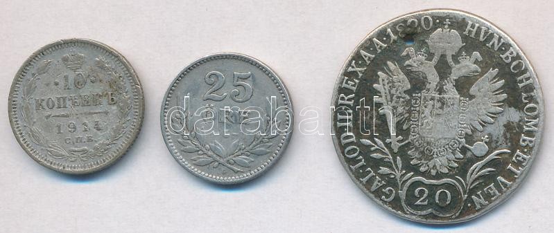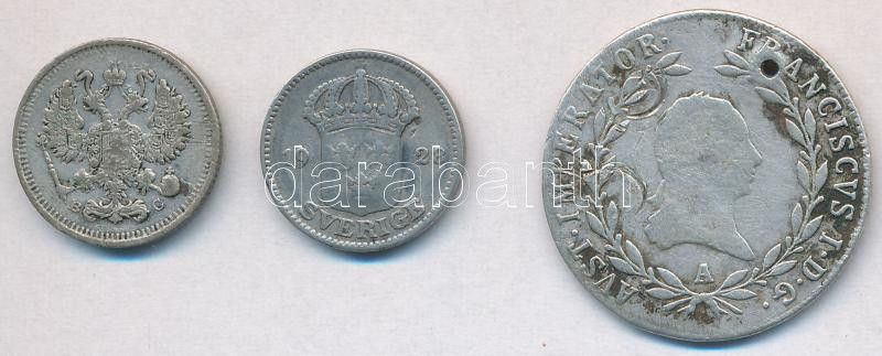 Vegyes: Ausztria 1820A 20kr Ag "I. Ferenc" + Orosz Birodalom 1914. 10k Ag + Svédország 1928. 25ö Ag T:2-,3 ly.
