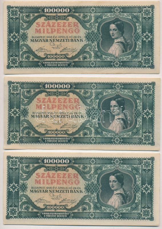 1946. 100.000MP (3x) sorszámkövetők, egyiken erősen balra tolódott hát... https://www.darabanth.com/hu/283-Gyorsarveres/283.0/Numizmatika/Magyar-bankjegyek~300022/1946-100000MP-3x-sorszamkovetok-egyiken-erosen-balra-tolodott-hatlapi-nyomat-TI-I---Adam~II1468183