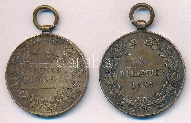 1873. "Hadiérem" Br katonai érdemérem mellszalag nélkül + 1898. "Jubileumi Emlékérem Fegyveres Erő Számára / Signum memoriae (AVSTR)" Br kitüntetés mellszalag nélkül T:2-3 ph.