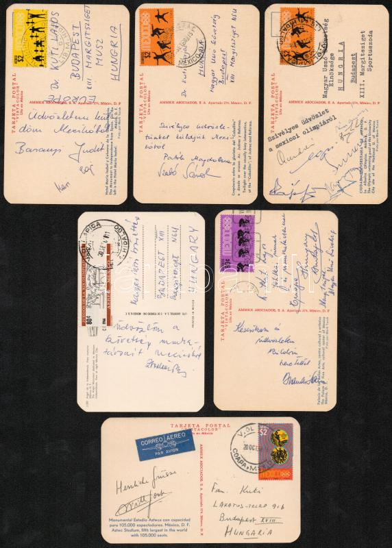 Leírás: 1968 Sportolók mexikói olimpiáról hazaküldött képeslapjai aláírásukkal, 6 db képeslap