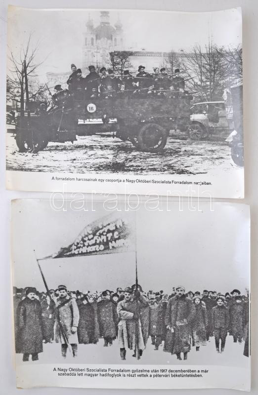 Leírás: A Nagy Októberi Szocialista Forradalom emlékei, 5 db fotó, feliratozva, 24x30 cm.