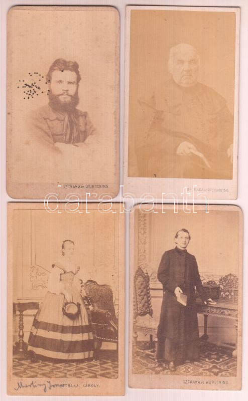 Leírás: cca 1867 4 db keményhátú műtermi portréfotó Sztraka és Würsching besztercebányai műterméből, 10x6 cm