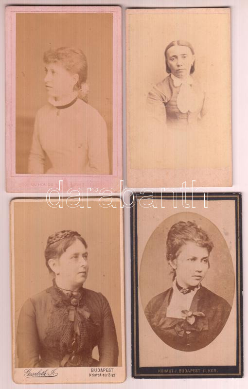 cca 1880-1910 Hölgyportrék, 6 db keményhátú fotókülönböző műtermekből(... https://www.darabanth.com/hu/284-Gyorsarveres/284.0/Festmeny-mutargy-papirregiseg-egyeb/Foto~19/cca-1880-1910-Holgyportrek-6-db-kemenyhatu-fotokulonbozo-mutermekbolBudapest-Abbazia~II1480199