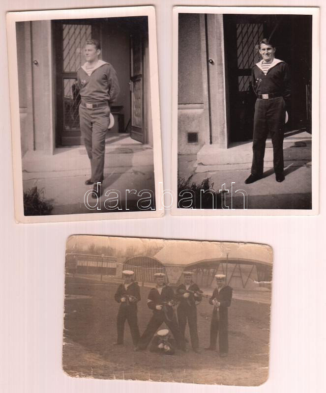 Leírás: cca 1960-1980 Flottilások, 3 db fotó, az egyik kissé szakadozott állapotban, 6x9 cm, 9x6 cmx2.