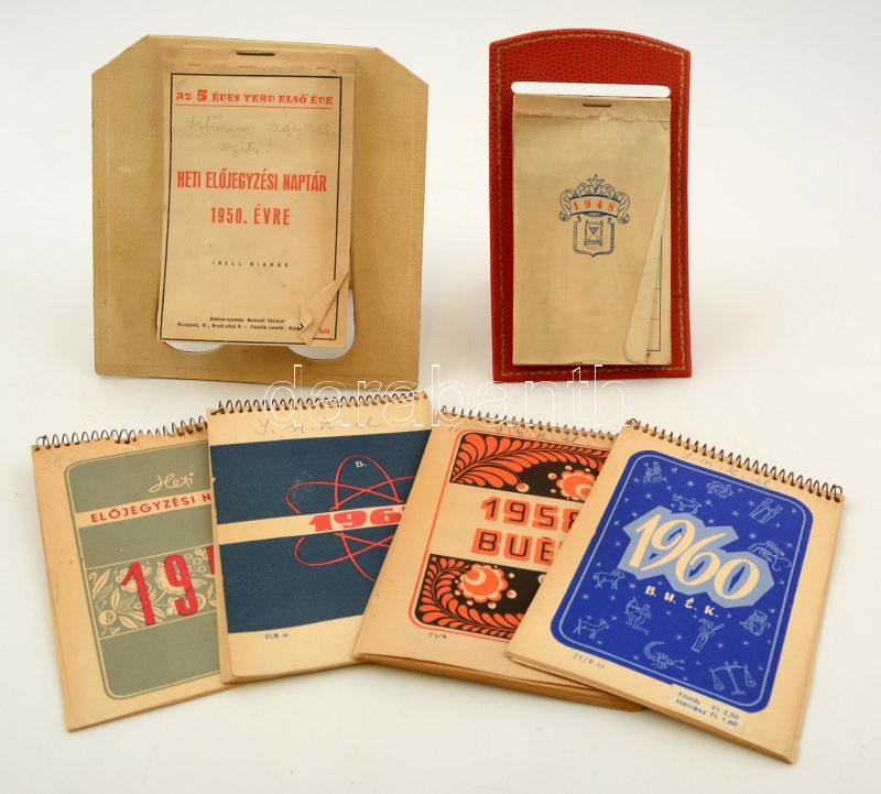 Leírás: 1948-1963 Kisméretű asztali naptárak, 6 db
