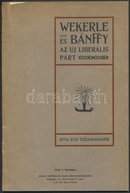 Leírás: cca 1903 Wekerle és Bánffy, Az új liberális párt, írta: egy Tiszamaradék, kiadja Grünbaum Ármin Könyvkereskedése, 30p