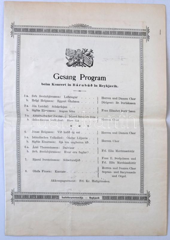 Leírás: cca 1905 Gesang Program beim Koncert in Bárubúd in Reykjavik - kétnyelvű koncertprogram / music program of German choir in Iceland