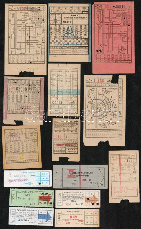 Leírás: Budapesti és vidéki városok közlekedési vállalatainak jegyei, 15 db