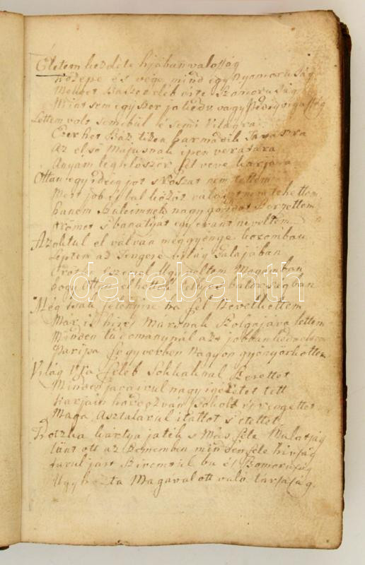 cca 1800 Azonosítatlan személy kézzel írt naplója, benne versekkel, feljegyzésekkel, praktikus tudnivalókkal, kicsit sérült bőrkötésben, kb. 150 oldal, közte üres lapokkal is