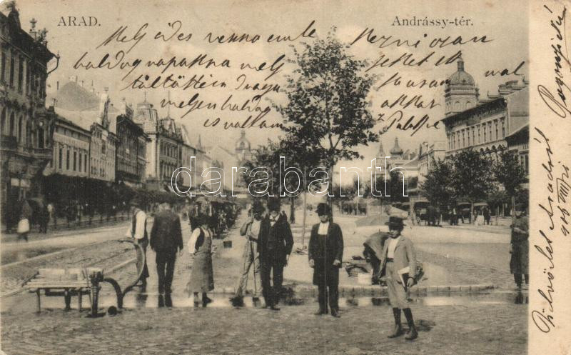 Leírás: Arad, Andrássy tér, utcamosás / square, street washing (EK)