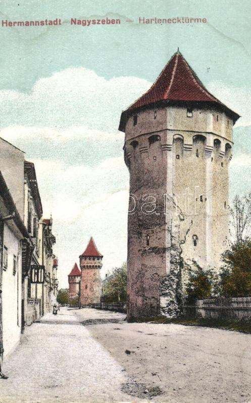 Nagyszeben, Hermannstadt, Sibiu; Hartenecktürme / torony / tower (EK) https://www.darabanth.com/hu/284-Gyorsarveres/284.0/Kepeslapok/Erdely~200006/Nagyszeben-Hermannstadt-Sibiu-Harteneckturme-torony-tower-EK~II1480495