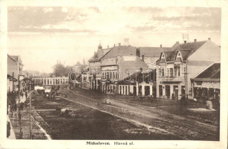 Nagymihály, Michalovce; Fő utca / Hlavna ul / main street (EK) https://www.darabanth.com/hu/284-Gyorsarveres/284.0/Kepeslapok/Felvidek~400020/Nagymihaly-Michalovce-Fo-utca-Hlavna-ul-main-street-EK~II1479323