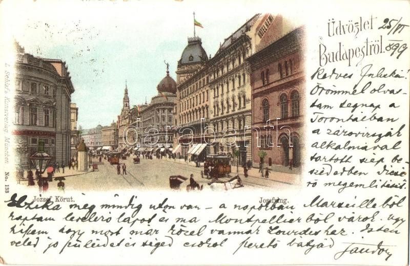 Leírás: 1899 Budapest VIII. József körút, Hotel Rémi, Magyar királyi Technológiai és Ipar múzeum, villamos. L. Schlaf's Kunstverlag litho