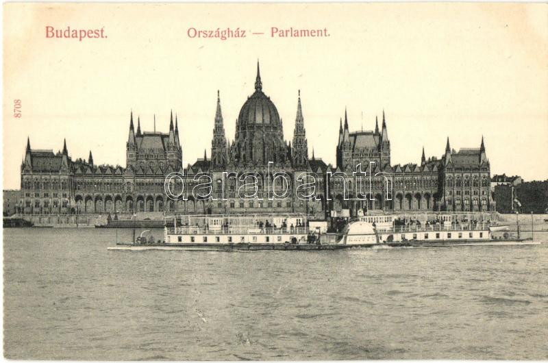 Leírás: Budapest V. Országház, Hattyú gőzös, Taussig A. kiadása