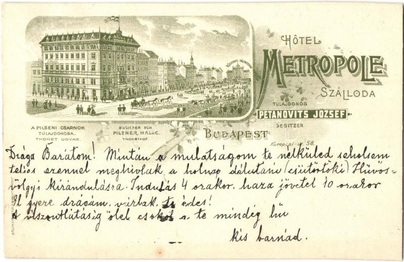 Leírás: Budapest VII. Petánovits József Hotel Metropole szállodája és kávéháza, Kerepesi út 58.