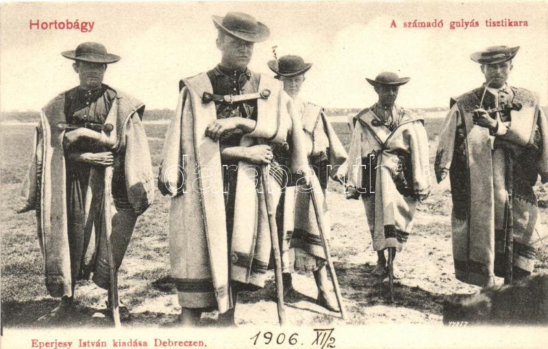 Hortobágy, Számadó gulyás tisztikara. Eperjesy István kiadása https://www.darabanth.com/hu/284-Gyorsarveres/284.0/Kepeslapok/Magyarorszag~200005/Hortobagy-Szamado-gulyas-tisztikara-Eperjesy-Istvan-kiadasa~II1478227