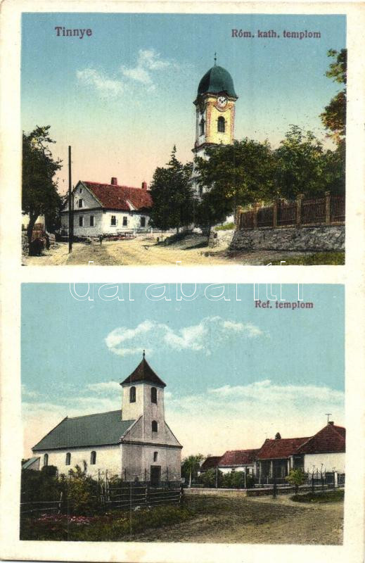 Tinnye, Római katolikus és református templomok https://www.darabanth.com/hu/284-Gyorsarveres/284.0/Kepeslapok/Magyarorszag~200005/Tinnye-Romai-katolikus-es-reformatus-templomok~II1476142