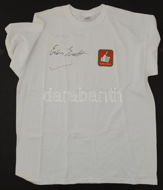 Erőss Zsolt, Buzánszky Jenő stb. aláírása XL-es pólón https://www.darabanth.com/hu/285-Gyorsarveres/285.0/Festmeny-mutargy-papirregiseg-egyeb/Alairas~100018/Eross-Zsolt-Buzanszky-Jeno-stb-alairasa-XL-es-polon~II1456838