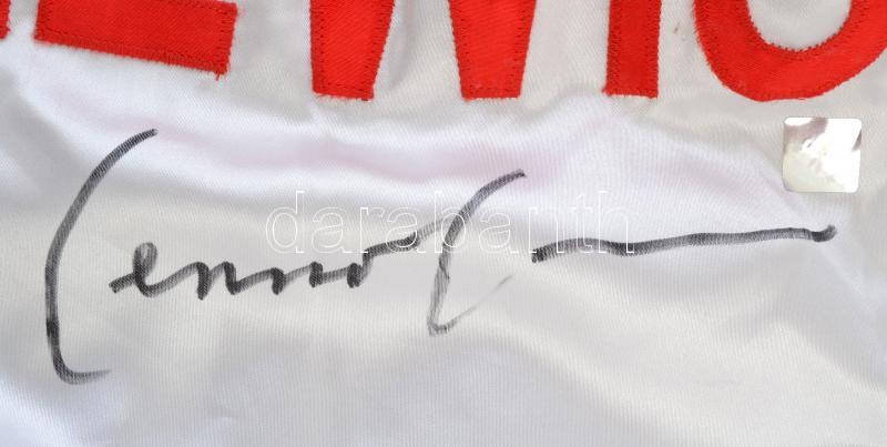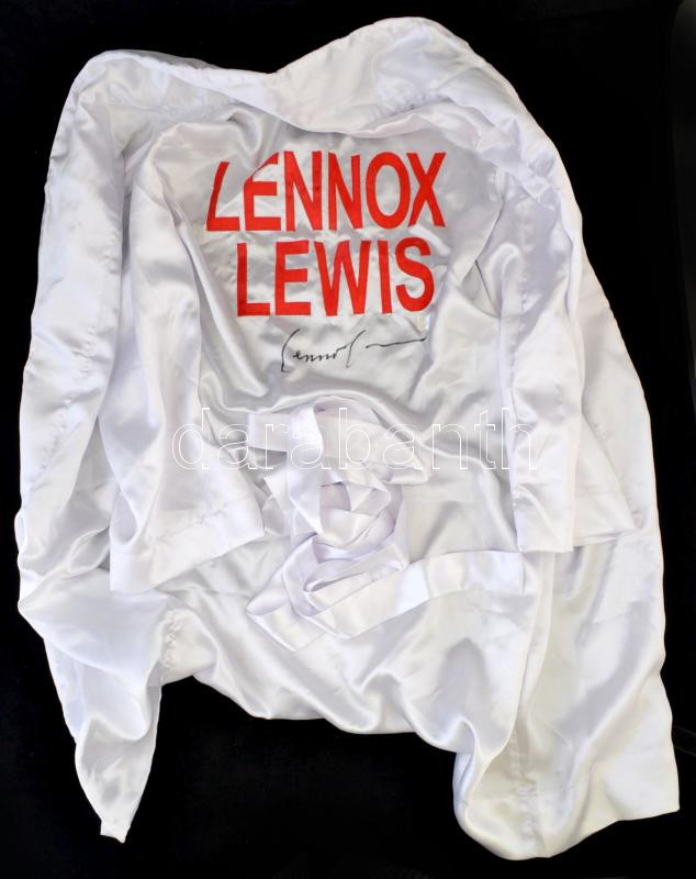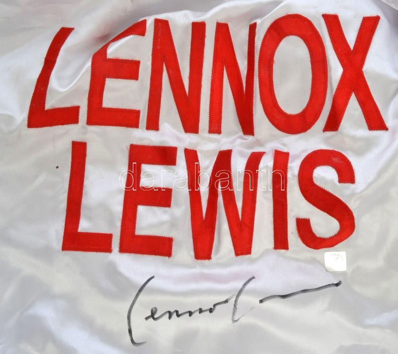 Leírás: Lennox Lewis (1965- ) nehézsúlyú bokszoló aláírása selyem bokszolóköntösön, hitelesítő lappal