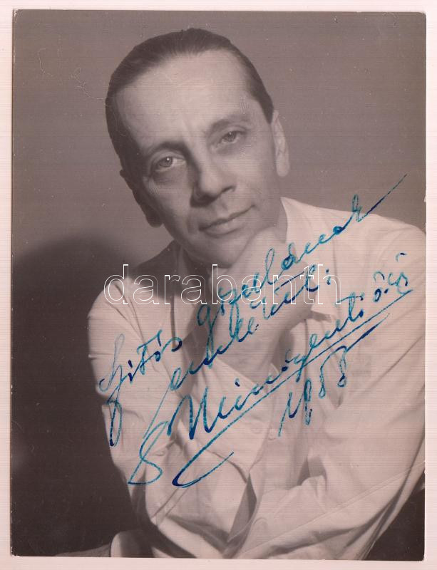 Leírás: Mindszenti Szvoboda Ödön(1908-1955) operaénekes(bariton) aláírása az őt ábrázoló képen