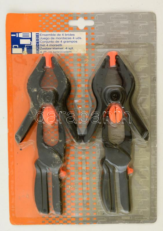 4 darabos szorítóelem, eredeti csomagolásában, jó állapotban https://www.darabanth.com/hu/285-Gyorsarveres/285.0/Festmeny-mutargy-papirregiseg-egyeb/Bolhapiac~100011/4-darabos-szoritoelem-eredeti-csomagolasaban-jo-allapotban~II1486306