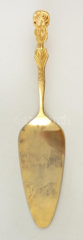 Leírás: 6 db aranyszínű süteményes villa, saját tartójában + 1 db aranyszínű tortalapát, h: 20,5 cm