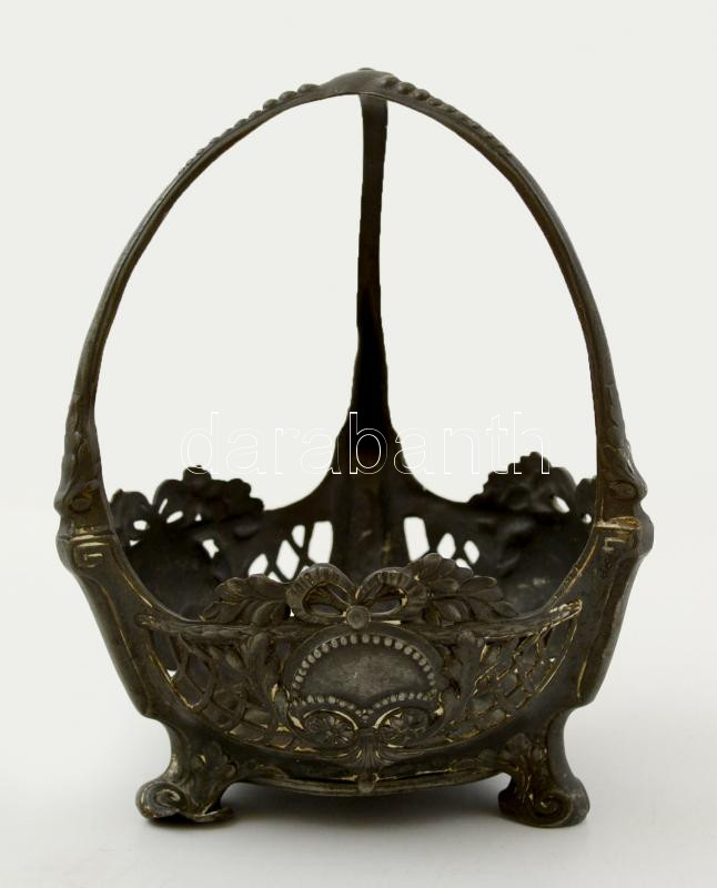 Leírás: Alpakka áttört kosár, jelzés nélkül, m:16 cm