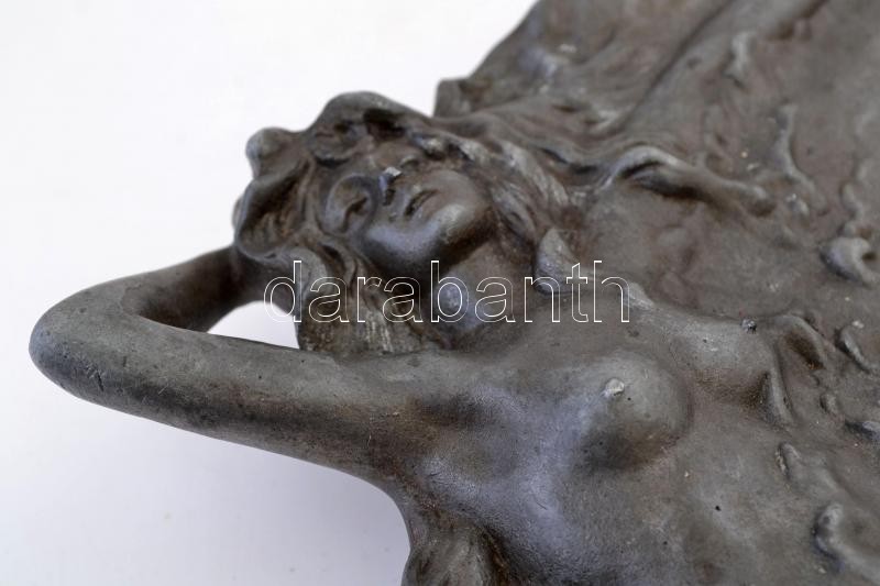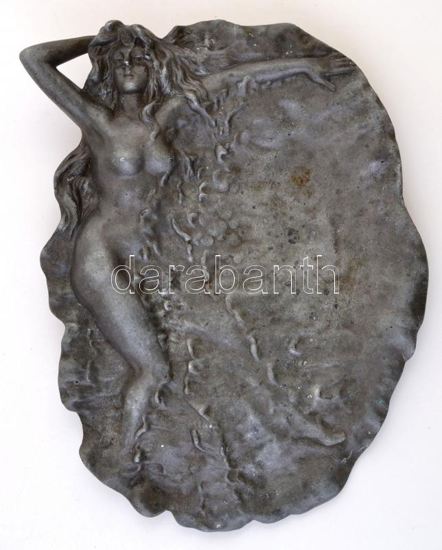 Leírás: Ón asztali tál női akttal, 30×25 cm