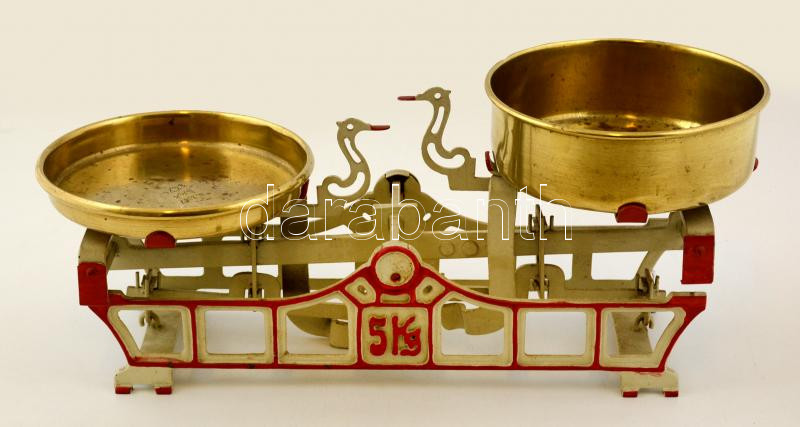 Régi 5 kg-os öntöttvas mérleg, két réz tálcával, jelzett, h: 44 cm, m:... https://www.darabanth.com/hu/285-Gyorsarveres/285.0/Festmeny-mutargy-papirregiseg-egyeb/Bolhapiac~100011/Regi-5-kg-os-ontottvas-merleg-ket-rez-talcaval-jelzett-h-44-cm-m-23-cm~II1491683