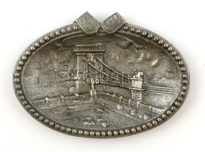 Régi Lánchídat ábrázoló alumínium dísztálka, jelzett, 8x12 cm. https://www.darabanth.com/hu/285-Gyorsarveres/285.0/Festmeny-mutargy-papirregiseg-egyeb/Bolhapiac~100011/Regi-Lanchidat-abrazolo-aluminium-disztalka-jelzett-8x12-cm~II1493746