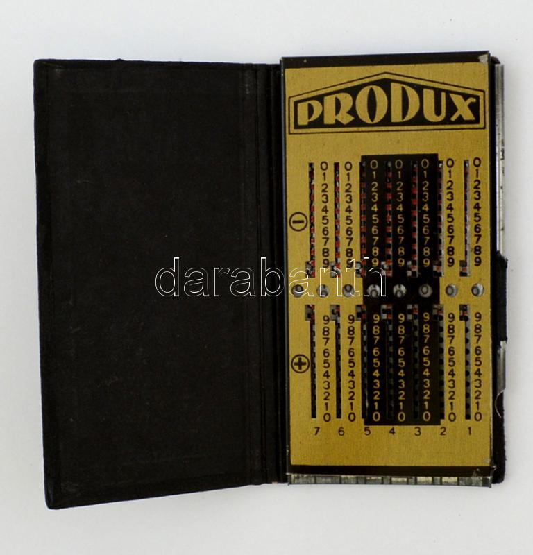 Leírás: Régi Produx mechanikus számológép, saját tokjában, jó állapotban