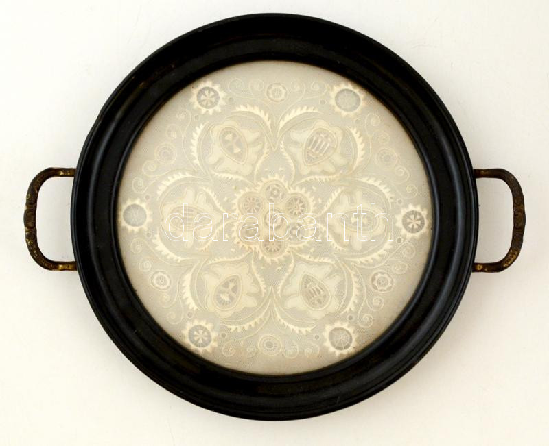 Leírás: Régi füles reggeliző tálka, belül részletgazdag csipke díszítéssel, kis lepattanással, d: 23,5 cm