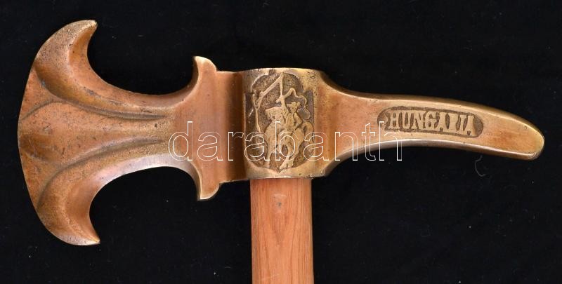 Leírás: "Hungaria / Jamboree 1933" feliratú rézfejű cserkész fokos, új nyéllel, m: 79,5 cm