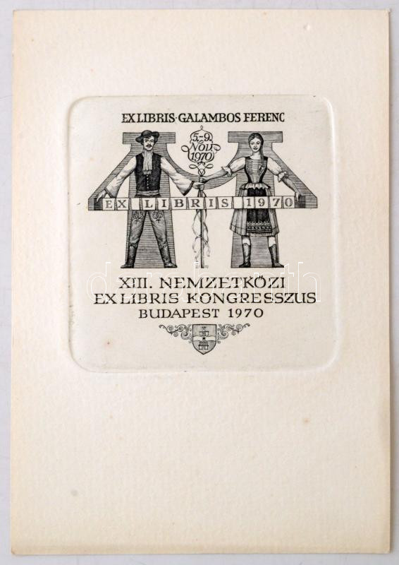 Leírás: 1970 Nemzetközi Ex libris Kongresszus rézkarc / engraving 8x8 cm