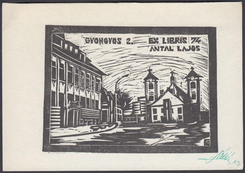 Leírás: Fábián Tivadar: Gyöngyös. Ex libris Antal Lajos. Linó, papír, jelzett, 11x15 cm