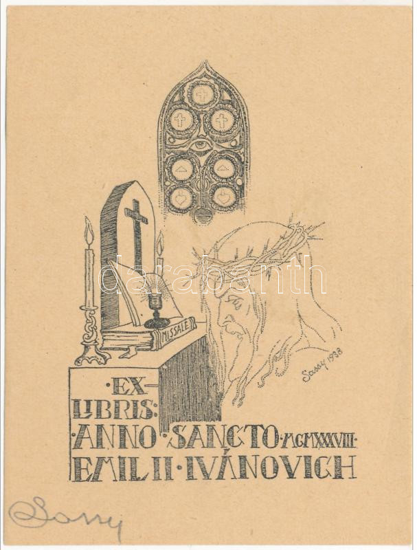 Sassy Attila (Aiglon) (1880-1967): Ivánovich Emil (1874-1946) apátkano... https://www.darabanth.com/hu/285-Gyorsarveres/285.0/Festmeny-mutargy-papirregiseg-egyeb/Ex-libris-es-kisgrafika~100002/Sassy-Attila-Aiglon-1880-1967-Ivanovich-Emil-1874-1946-apatkanonok-ex-librise-az-1938-evi~II1465862