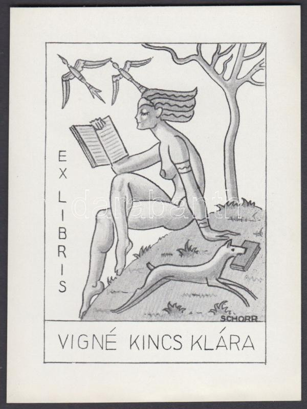 Leírás: Schorr Tibor (?-?): Erotikus art deco exlibris Vigné Kincs Klára. Klisé, papír, jelzett a klisén, 9×6 cm