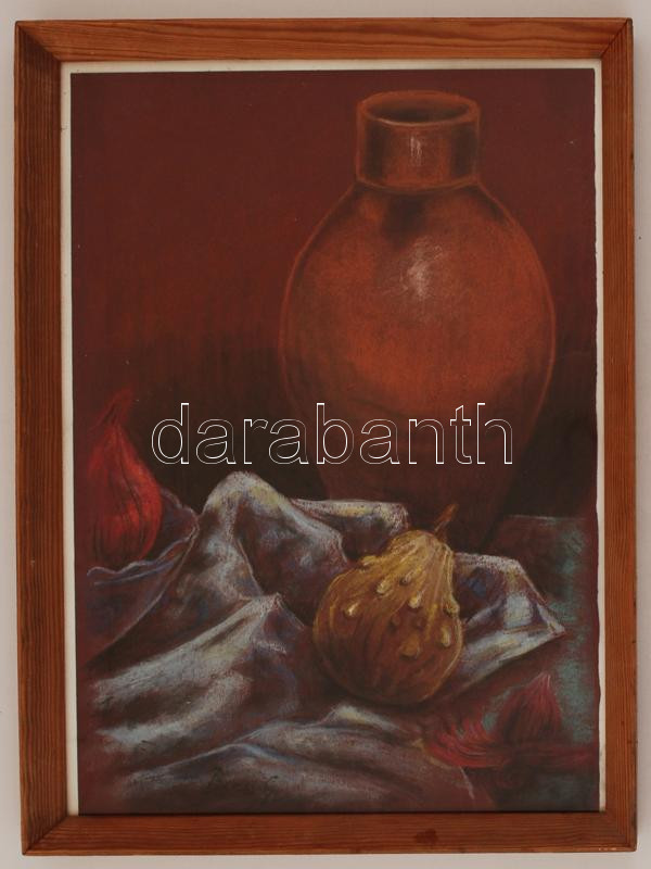 Leírás: Bene jelzéssel: Csendélet. Pasztell, papír, üvegezett keretben, 50×34 cm