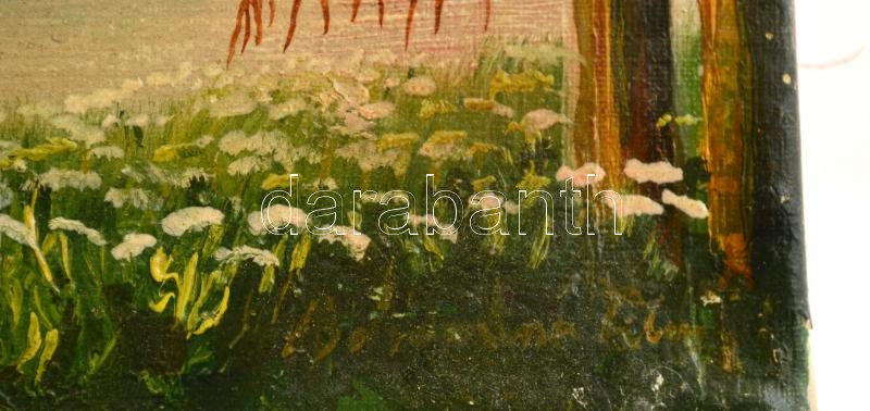Leírás: Boromissza jelzéssel: Alpesi táj. Olaj, vászon, sérült, 24×33 cm