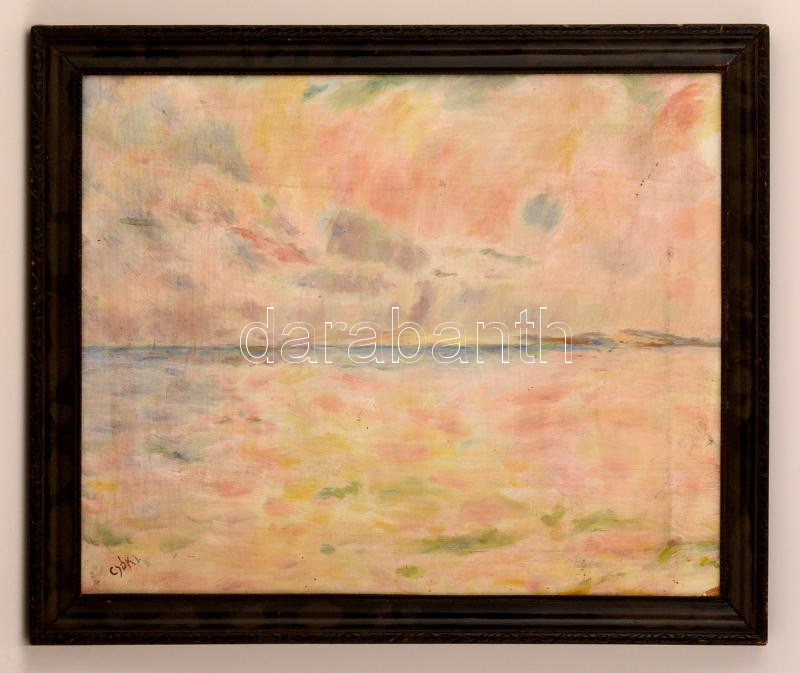 Csók jelzéssel: Horizont. Olaj, farost, keretben, kis hibával, 39×47 c... https://www.darabanth.com/hu/285-Gyorsarveres/285.0/Festmeny-mutargy-papirregiseg-egyeb/Festmenyek-es-grafikak~100001/Csok-jelzessel-Horizont-Olaj-farost-keretben-kis-hibaval-39C39747-cm~II1390485