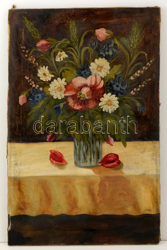 Csók jelzéssel: Virágcsendélet. Olaj, vászon, foltos, 70×44 cm https://www.darabanth.com/hu/285-Gyorsarveres/285.0/Festmeny-mutargy-papirregiseg-egyeb/Festmenyek-es-grafikak~100001/Csok-jelzessel-Viragcsendelet-Olaj-vaszon-foltos-70C39744-cm~II1488865