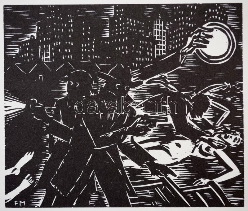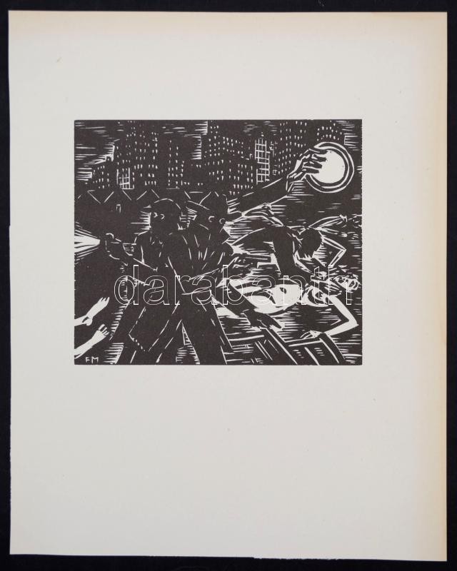 Leírás: Frans Masereel (1889-1972): Bűnös város, fametszet, papír, jelzett a metszeten, 13×11 cm
