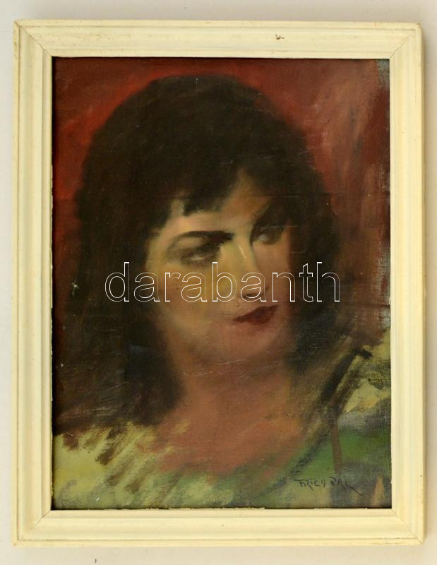 Fried jelzéssel: Női portré. Olaj, vászon, 30×24 cm https://www.darabanth.com/hu/285-Gyorsarveres/285.0/Festmeny-mutargy-papirregiseg-egyeb/Festmenyek-es-grafikak~100001/Fried-jelzessel-Noi-portre-Olaj-vaszon-30C39724-cm~II1490654