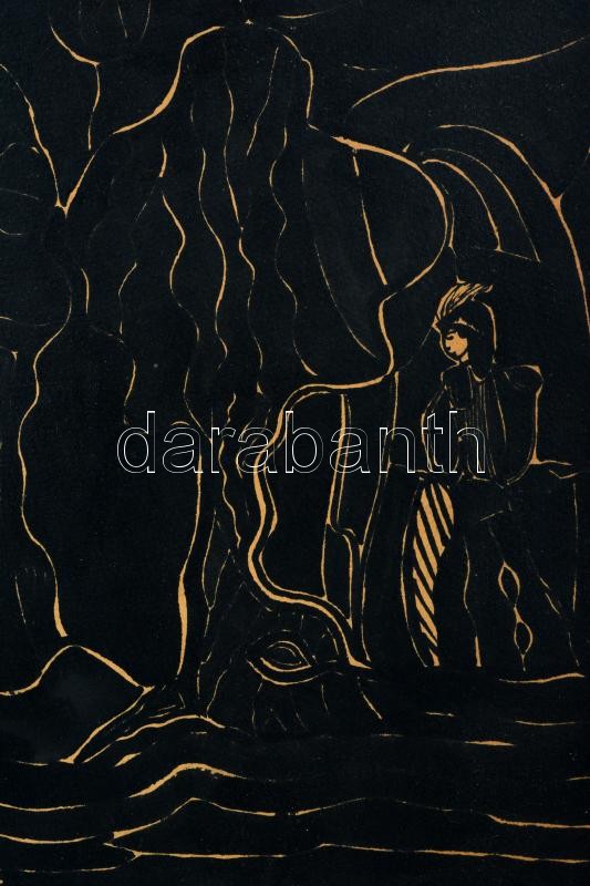 Kajzán jelzéssel: Hölgy a vízparton. Tus, karton, keretben, 47×40 cm https://www.darabanth.com/hu/285-Gyorsarveres/285.0/Festmeny-mutargy-papirregiseg-egyeb/Festmenyek-es-grafikak~100001/Kajzan-jelzessel-Holgy-a-vizparton-Tus-karton-keretben-47C39740-cm~II1401303