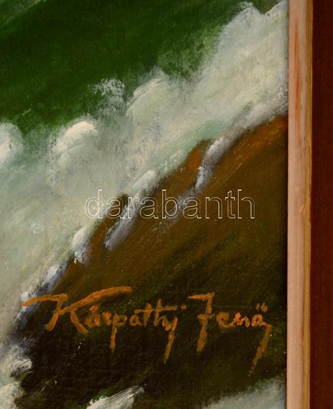 Kárpáthy jelzéssel: Sebess folyó. Olaj, vászon, keretben, 50×72 cm https://www.darabanth.com/hu/285-Gyorsarveres/285.0/Festmeny-mutargy-papirregiseg-egyeb/Festmenyek-es-grafikak~100001/Karpathy-jelzessel-Sebess-folyo-Olaj-vaszon-keretben-50C39772-cm~II1443436
