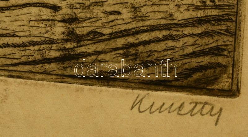 Leírás: Kmetty János (1889 -1971): Dunapart. Rézkarc (12/50), papír, jelzett, apró gyűrődésekkel, 12×19 cm